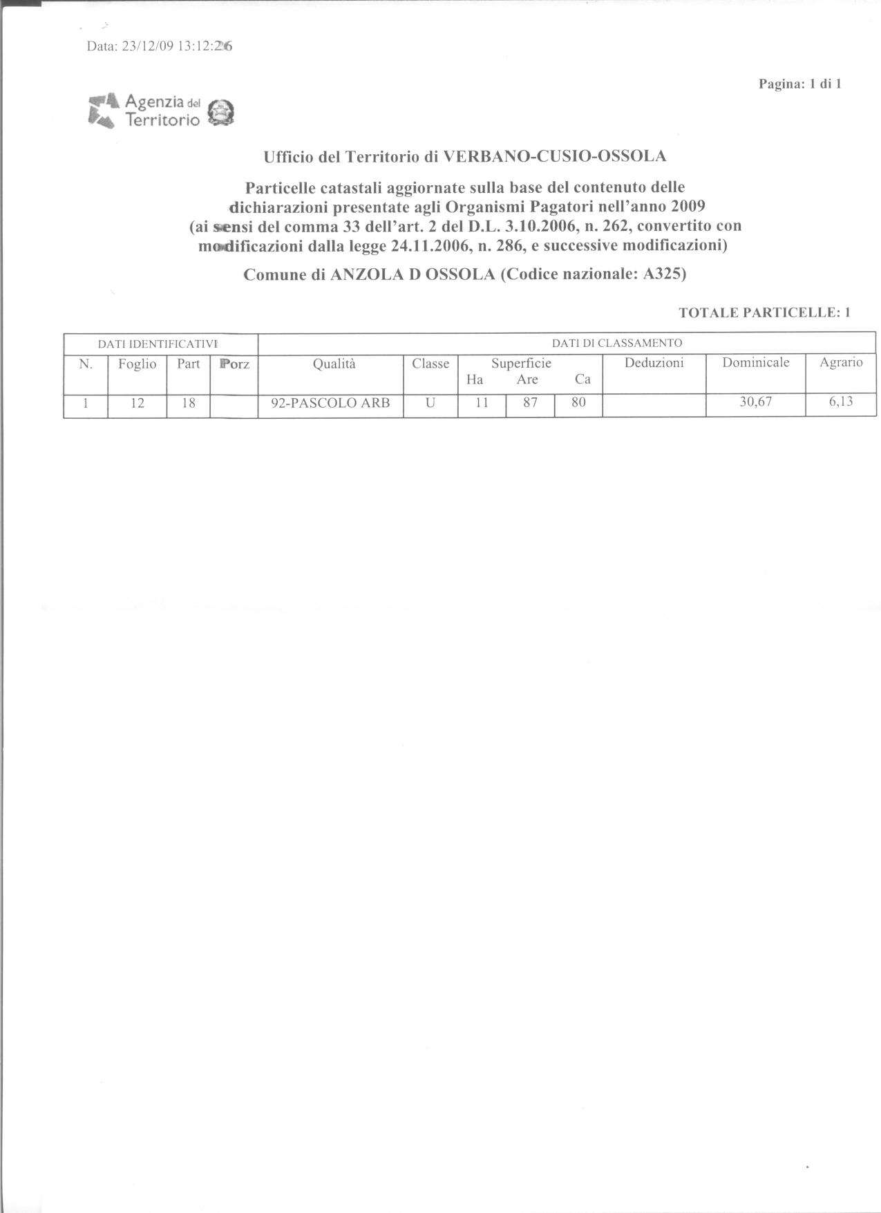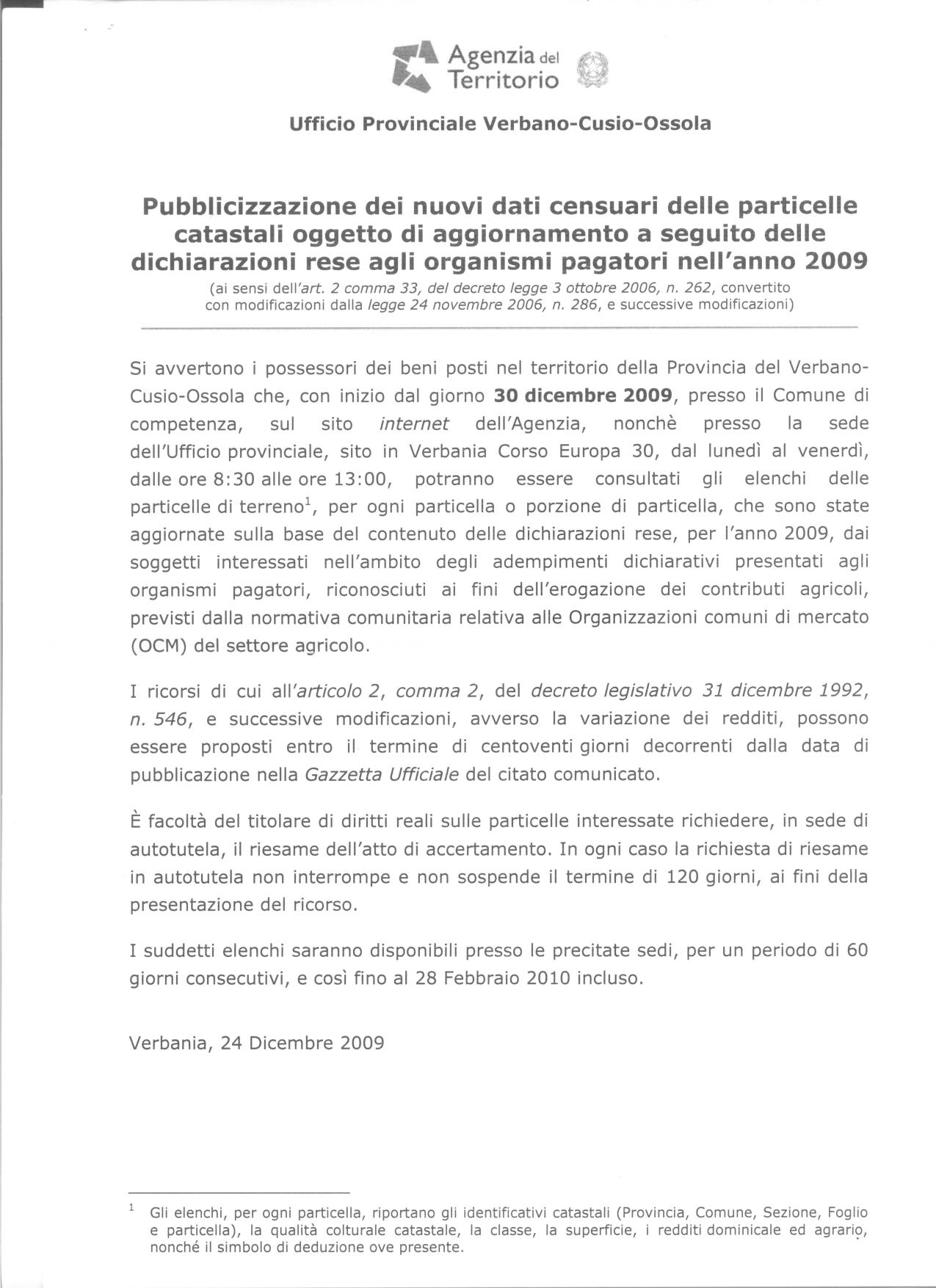 Pubblicizzazione dei nuovi dati censuari delle particelle catastali oggetto di aggiornamento a seguito delle dichiarazioni rese agli organismi pagatori nell'anno 2008