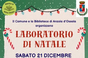 Il Comune e la Biblioteca di Anzola d'Ossola organizzano il LABORATORIO DI NATALE, sabato 21 dicembre 2024 dalle ore 14.30 presso il circolo di cultura. Vi aspettiamo per trascorrere un pomeriggio...