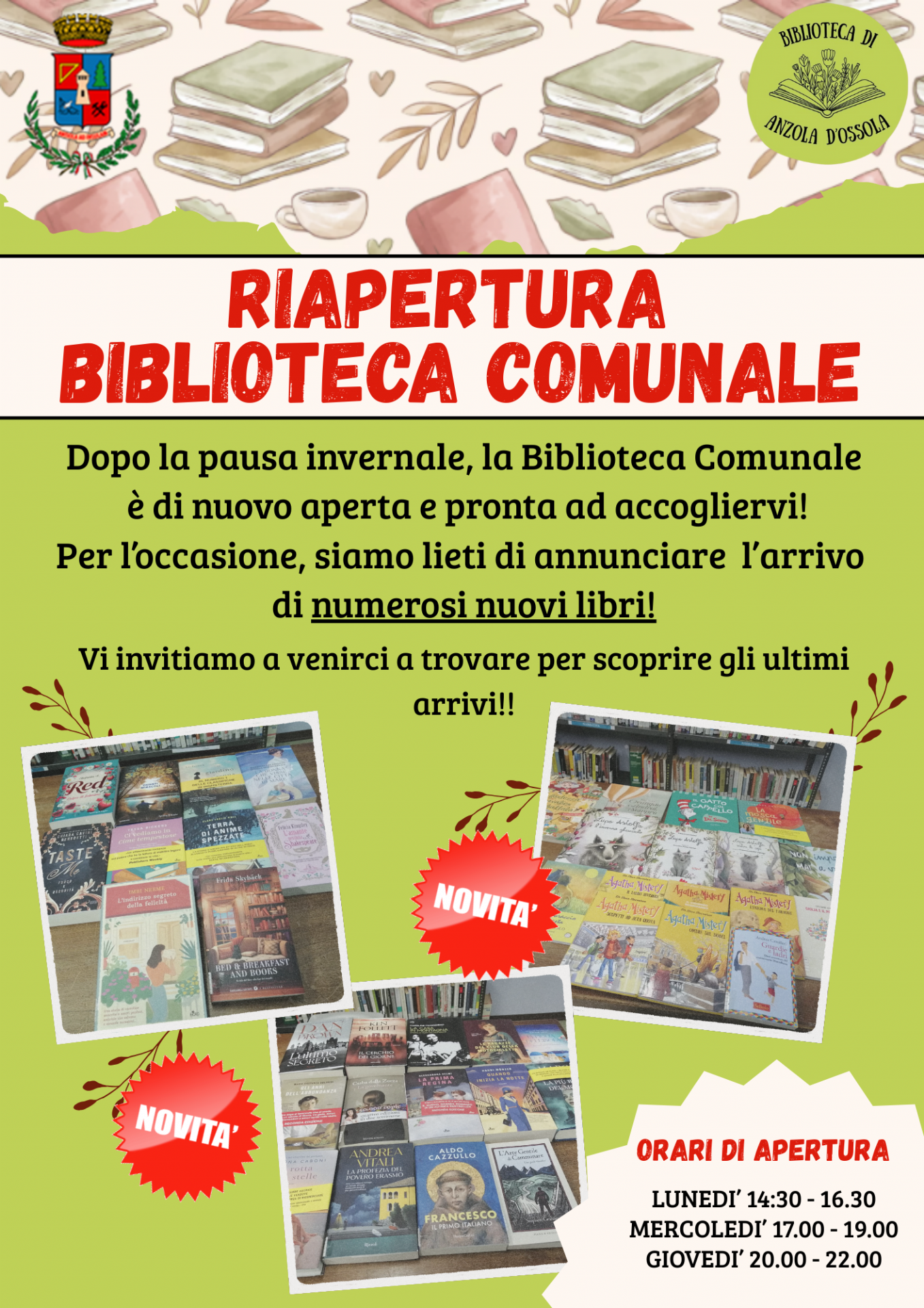 Dopo la pausa invernale, la Biblioteca Comunale è di nuovo aperta e pronta ad accogliervi!