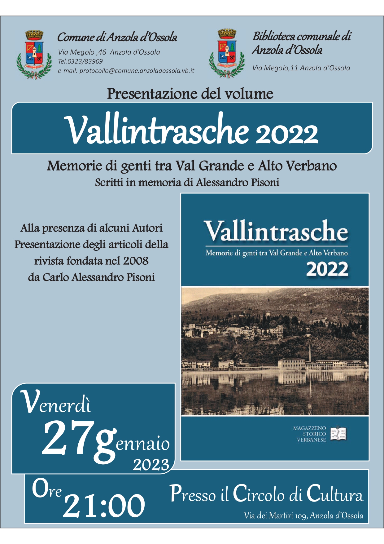 Presentazione del volume Vallintrasche 2022 - Memorie di genti tra Valgrande e Alto Verbano - Scritti in memoria di Alessandro Pisoni.